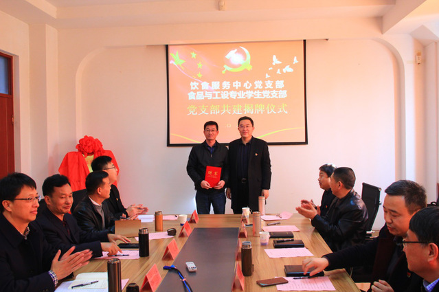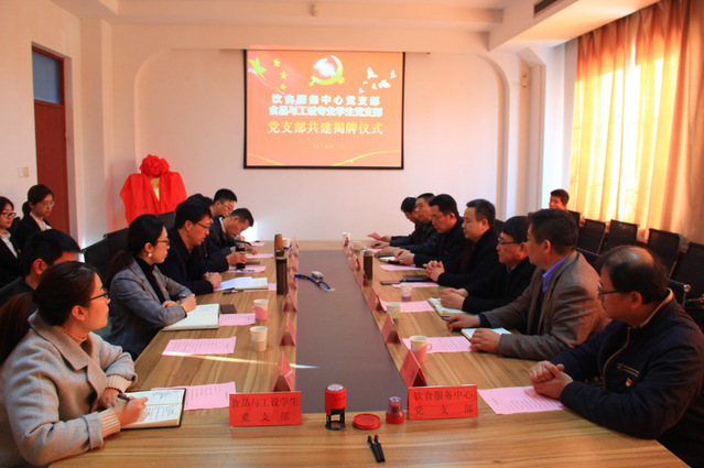 为深入贯彻落实校党委吕传毅书记在《中国共产党山东理工大学第三次代表大会上的报告》中提出的“要深化人才培养模式,提高学生成长成才能力”的会议精神,发挥基层党组织和广大党员在构建全员育人教育格局方面的重要作用,本着“围绕中心、服务大局、优势互补、共同提高”的原则,后勤管理处饮食服务中心党支部和农工学院食品与工设学生党支部双方共同协商,就党支部共建事宜达成共识。3月15日上午,饮食服务中心党支部和食品工设学生党支部签约仪式在农工学院12号教学楼会议室举行,出席会议的有校党委常委、副校长查玉喜,农工学院和后勤处各位领导,以及农工学院教师代表、学生代表、饮食中心班子成员和职工代表。饮食服务中心主任杨嵩先主持。