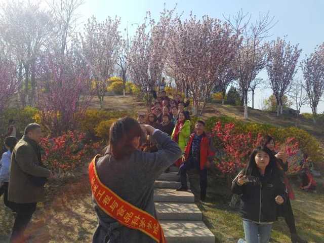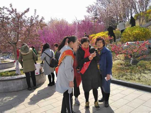 活动伊始,服务部部长张洪凯分发志愿团绶带并将志愿者分为两组分别负责连心湖,稷下湖的活动。活动过程中,志愿者们向游客介绍山东理工大学最佳赏花地点并提醒游客拍照过程中注意安全,有些游客也在志愿者的带领下去三教图书馆等地赏花。赏花期间志愿团成员会为游客讲解有关花草的知识,并制止游客大声喧哗,随意采摘等不当行为,使游客学会正确赏花。游客得知此次活动为志愿团志愿活动,也都积极配合。并有游客请志愿者帮忙拍照并与志愿者合照留念。也有一部分志愿者负责及时疏通人流,减少拥堵,避免踩踏等事件发生,获得游客的赞美与鼓励。