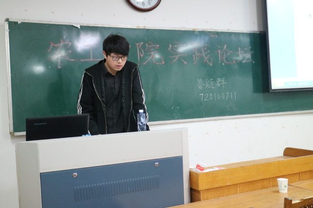 而“农情天山”团队喻邦勇除了给同学们讲解社会实践的相关事宜之外还分享自己团队的社会经历。讲到社会实践的相关事宜时,他非常细致地从前期准备、参加人员和新闻宣传等五个方面为同学们进行讲解,其中着重讲解在新闻宣传方面的注意事项以及新闻宣传对于一个实践团队的重要性。每一位同学都认真倾听他的讲解并且认真地记录。他通过几个感人肺腑的故事来表达自己社会实践时感受,情真意切的讲述触动同学们的心灵,在场的同学都有很大的感触。伴随着一张张感人的照片在屏幕上浮现,论坛逐渐进入尾声。