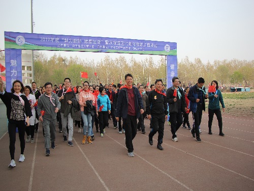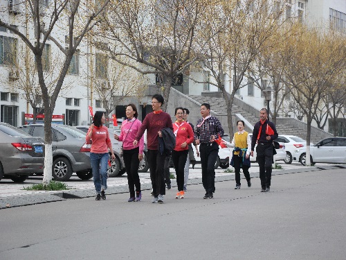 健步走从中心体育场出发,绕场一周,从体育场西南门出门后向南,由北向南穿过国防教育展示园区,右转沿鸿远路、文明路、青年路、绿岛西路、弘毅路,从中心体育场西南门返回体育场并绕场一周至起点门结束。嗅着醉人的花香,教师们精神饱满、热情高涨、边走边交流,呼吸着新鲜空气,感受着健步走带来的欢乐。四色飘带,飘动的是老师们的热情,志愿者路口的指引,是路上最美的风景线。途中,教职工队伍遇到其他组成员,热情打招呼。走过3.5公里路程,老师们不但毫无倦意反而精神焕发。谈笑中,教师们不知不觉到达终点,并获得此次活动的纪念品。