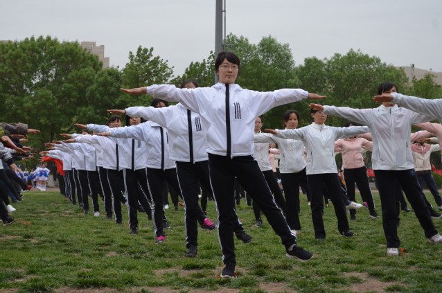 随着广播体操音乐的响起,农工学院教职工穿着统一,以精神最饱满的姿态迎着朝阳随音乐律动。他们动作整齐划一,脸上洋溢着热情的微笑,今天他们不在端坐肃穆,今天他们就是运动场上最亮丽的风景。