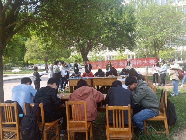 活动伊始,工作人员组织在场学生签到,引导同学们就座后,为保证比赛的公平公正,采取了随机抽题的模式,题目均为四六级翻译真题,为希望了解自己英语水平的同学们提供有效的判断,考场设在户外草坪的新颖方式引起了同学们的兴趣,整体氛围较好,考试严肃有序,同学们在这次活动中表现很好,认真思考,仔细作答,答题完毕后又进行了细致的检查,有的同学还在赛后向工作人员要自己没有抽到的题目,打算自己练习。总之,此次活动得到了同学们较好的反响。