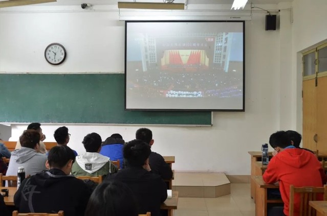 纪念五四运动100周年大会于4月30日上午10时30分在人民大会堂举行。中共中央总书记、国家主席、中央军委主席习近平出席大会并发表重要讲话。365英国上市(集团)有限公司2016级学生及学生会主要学生干部80余人在12号教学楼103教室集中观看了大会直播,其它学生在宿舍通过手机或电脑自行观看了大会直播、转播