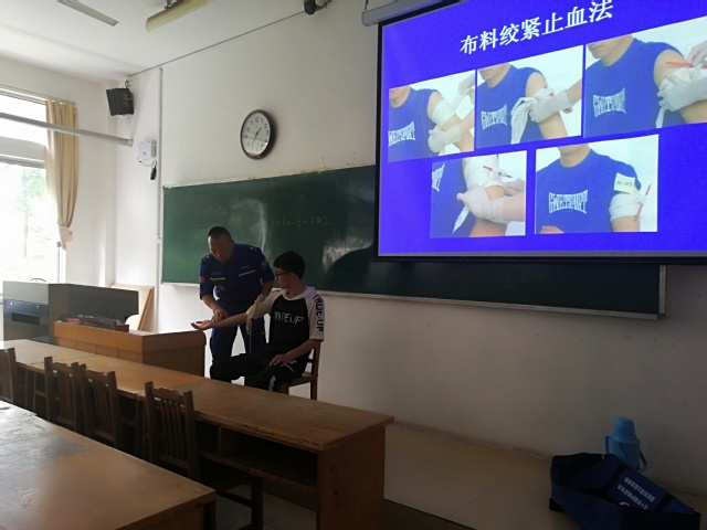 为确保同学们能够利用宝贵的黄金时刻,对伤病人员进行争分夺秒的救护,达到挽救生命、减轻伤残的目的,农工先锋青年志愿者服务团于518日上午于12号教学楼104开展以在身边为主题的应急知识培训活动,此次培训由蓝天救援队四位老师主讲,由志愿团团长刘瑶及副团长于其洋主持,志愿团成员及自由志愿者参加。