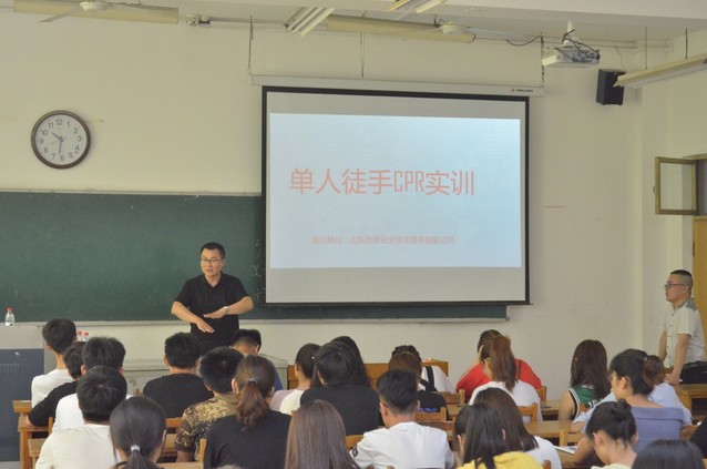 为加强大学生应对突发情况时的应急能力,6月29日上午365英国上市(集团)有限公司于12号教学楼113教室举办安全教育实训。此次活动由学生办公室老师魏洪磊主持,邀请山东佳鼎安全技术服务有限公司服务部王祥伟担任主讲,技术总工胡尊磊担任点评人。365英国上市(集团)有限公司2017级、2018级各班长和团支书以及部长级以上学生干部参与此次活动。