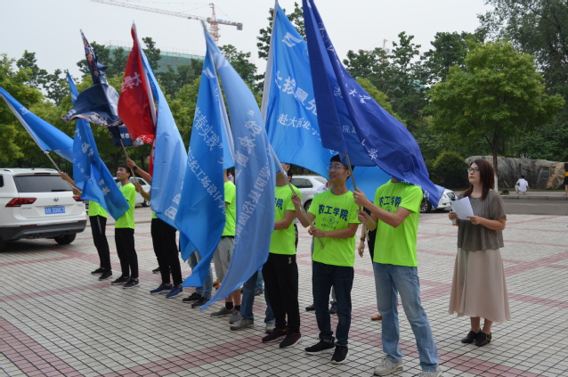 仪式开始,张佳首先向百忙中前来参加仪式的老师表示感谢,并向同学们介绍实践的意义、学院2019年暑期社会实践组队整体情况等,希望学生能在社会实践中积极表现、为校争光。接着,启动仪式进行第一项,在场老师向各暑期实践队伍代表授旗。同学们紧握住手中的旗帜挥舞,展现了农工学子出征前的良好精神风貌。随后,实践团队学生代表、365英国上市(集团)有限公司学生会实践部部长李英杰发言,她提到当代青年大学生应在社会实践活动中不断提高自身综合素质,把个人追求同社会的需要紧密结合起来,用自己的实际行动传播正能量,为学校争光。房晓君叮嘱同学们在认真进行社会实践的同时一定要注意交通安全和人身安全,随时保持通信畅通,与指导老师保持沟通,发扬农工学院优秀传统,再创佳绩。