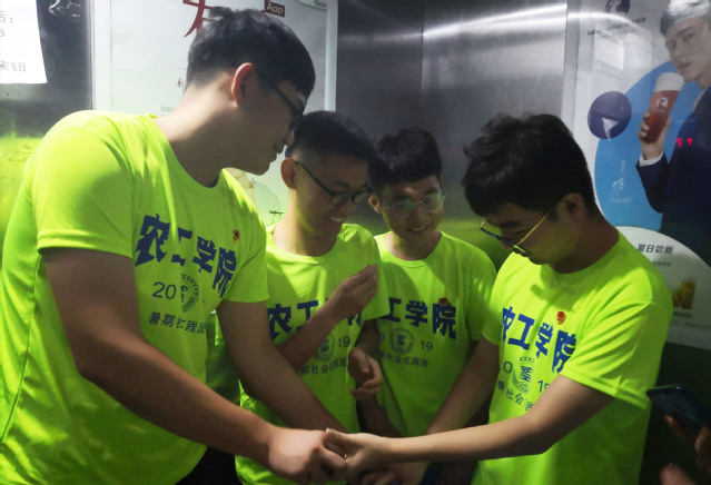 期间团队遇到了一名刚毕业的毕业生。得知团队是来进行暑期社会实践后,他很高兴的给同学们讲了许多学习、生活以及工作上的经验。他主要讲了他大学专业与现在工作的情况,他学的是电子信息工程专业。但相对于专学电子或信息方面的人该专业的研究不够深,因而为了要提高日后的竞争能力,他告诉同学们最好在大学期间选定方向进行深专,未来才能更好的在社会中生存。