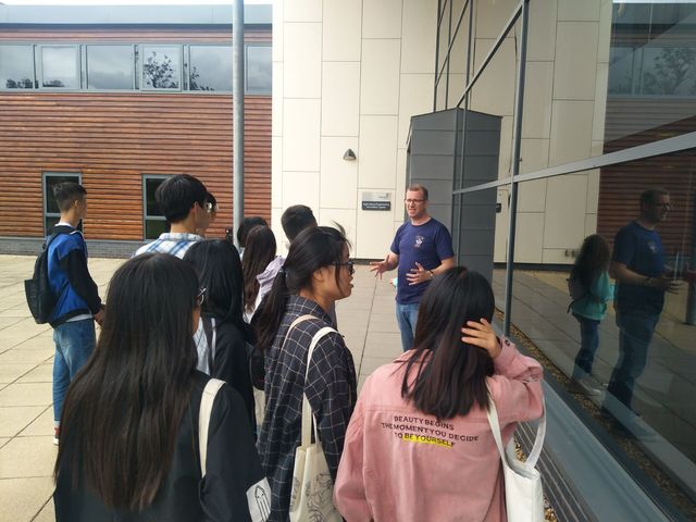 英方语言支持负责人Stephen Giles先生及其助理在帮助安置好宿舍后,带领访学团参观了哈珀亚当斯大学的餐厅、教学楼、农场和英国国家精准农业中心。Stephen Giles重点介绍了本次哈珀亚当斯访学项目的主要教学地点、学校历史及著名建筑,同学们对哈伯亚当斯大学的教学环境有了初步认识,并对课程学习内容等问题进行了提问交流。