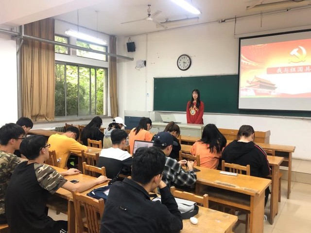 食品1802团支部号召新时代青年为祖国做贡献,开展主题团课,由团支书贾幸宸讲解从抗日战争到新中国成立的艰辛岁月,并一同观看学习强国中相关内容,同学们积极上台演讲发表个人意见。