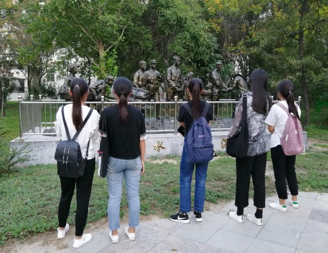 活动形式以演讲、歌颂、户外学习等为主,形式丰富多彩。其中食品1803团支部全体成员集合我校图书馆南草坪,通过边游览边听讲解的方式在国防教育主进行学习。