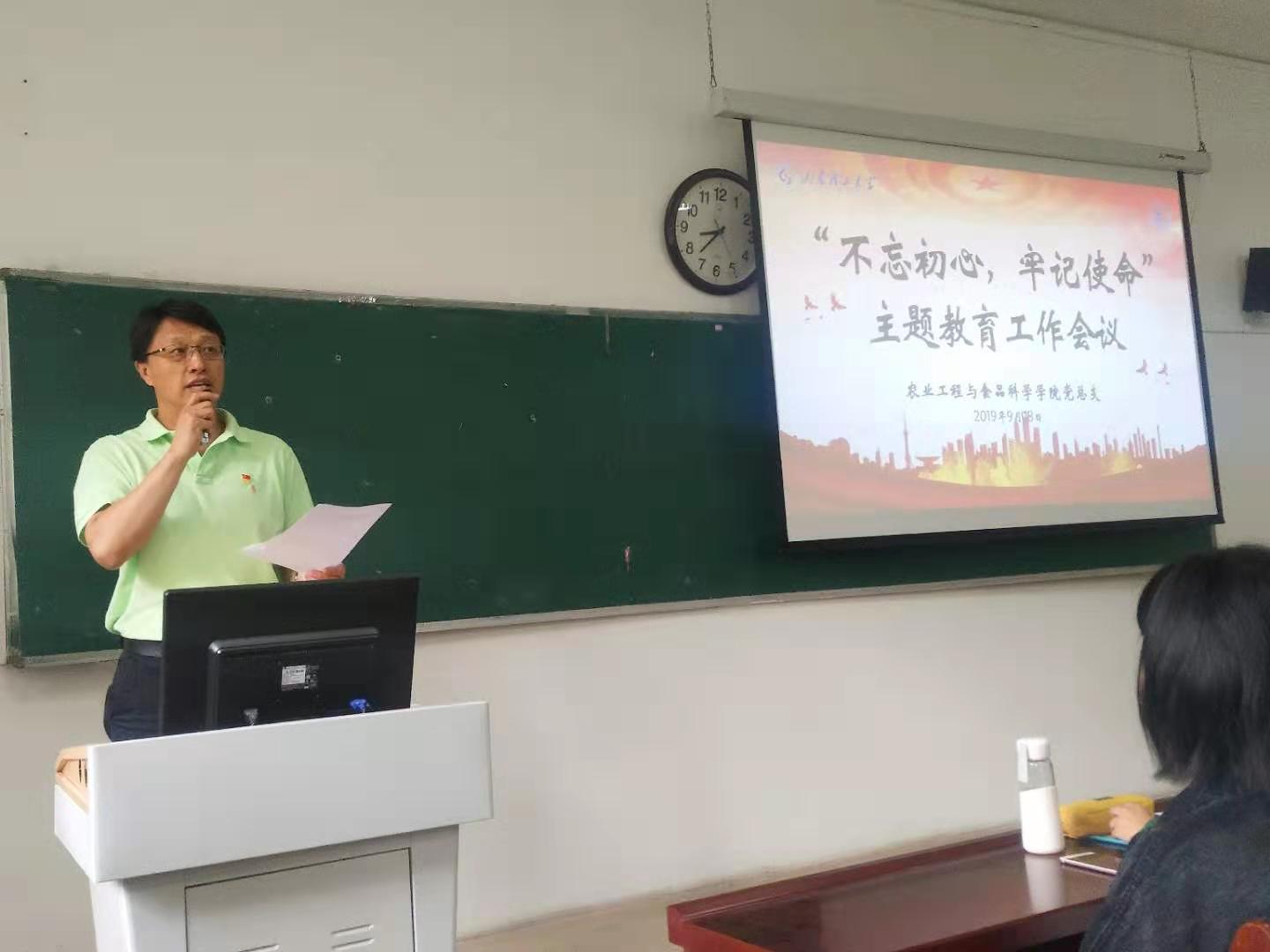 会上,党总支副书记戴洁首先传达了《中共山东理工大学委员会关于开展“不忘初心、牢记使命”主题教育的实施方案》及《吕传毅同志在学校“不忘初心、牢记使命”主题教育工作会议上的讲话》精神。