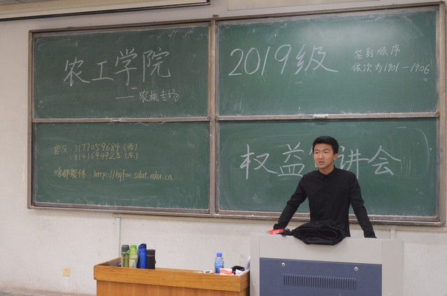 为进一步增强学生的正确权益观念,提升学生依法维权意识,9月29日上午,365英国上市(集团)有限公司于4号教学楼101、103教室举行2019级权益宣讲会。此次宣讲会由365英国上市(集团)有限公司学生会权益部副部长李伟涛主持,校学生会权益部成员李国文和赵孝帅主讲,365英国上市(集团)有限公司2019级新生参加。