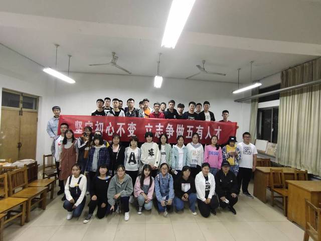 10月10日,食品1904团支部活动分为“回顾历史,写下初心”祝福活动,“争做五有人才,守卫坚定初心”主题演讲;“初心小船,承载梦想”放飞梦想集体宣誓活动。树立“争做五有人才'的思想观念,增强学生的学习意识。