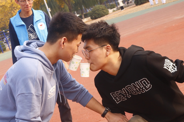 各项比赛开始后,第二体育场现场十分火爆,参赛选手信心百倍,热情洋溢。“花样跳绳”中参赛选手双手挥舞着跳绳无不展示着青春的气息;参加“成语大挑战”同学们满腹经纶,博学多才;“五人四足”的参赛团队各个激情四射,齐心协力;“你画我猜”项目也是趣味盎然,伴随着阵阵欢声笑语;“纸杯传水”参赛人员默契配合,争分夺秒。各项比赛有序进行着,冗长的队伍丝毫不减同学们参赛的热情,记录一次次被刷新,现场气氛紧张而又不失趣味。
