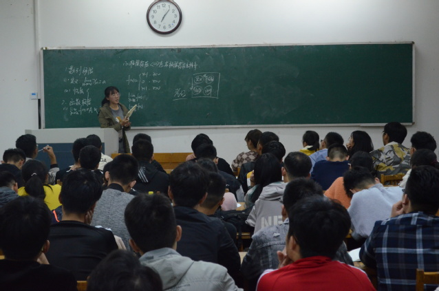 辅导包含高等数学第一章、第二章基础知识回顾和基本题型讲解两部分。开课时,教室里坐满了同学,连过道上都摆满座椅。罗莉带领同学们梳理基础知识并细心地讲解重难点题型,还将自己总结的解题方法分享给大家,同时留给同学们自主思考的时间。讲解过程中,她积极与同学们进行互动,引导同学们掌握正确的解题思路,督促同学们做好学习笔记。同学们均认真听讲,仔细记录,十分投入。