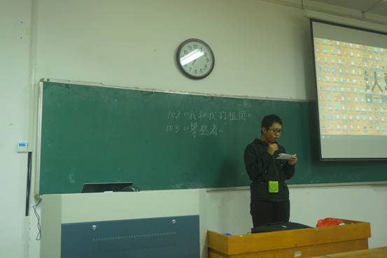 观影前,每位同学需要通过教室门口工作员的“考验”方能进入,同学们可以歌唱任意一首红歌,也可以背诵毛泽东诗词中的任意篇章,通过考验的同学们领取红旗、贴纸和信纸进入教室。“考验”过程中,同学们有的歌唱爱国歌曲,有的朗诵诗词,气氛十分活跃。