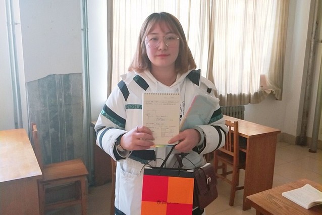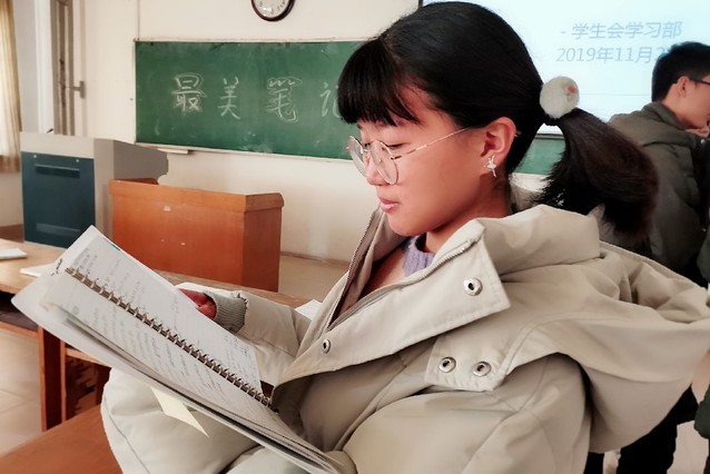 第二位采访者是农机1801的班长王亚男,她是一个活泼开朗,个性随和,善于表达自己的人,采访她时我们的聊天气氛一直都是欢乐的。她对自己获得一等奖感到非常荣幸,“我平时的努力没有白费,这是对我努力学习的肯定”。身为班长,做事条理有序是一种不可缺少的能力,她的空余时间也比一般的同学少很多,要同时兼顾学习和工作也是一个难题。每个人做笔记的习惯都不一样,有些人喜欢在老师讲课的时候随手记,这需要的是灵敏的反应力;还有人喜欢在老师讲的时候记下重点字词,课后自己补充,相对简单,但是需要很多课后的时间。王亚男的笔记大多属于前者,但是这并不意味着她课下花在整理笔记上的时间少,做事井井有条的她,下课仍会挤出时间来整理复习。