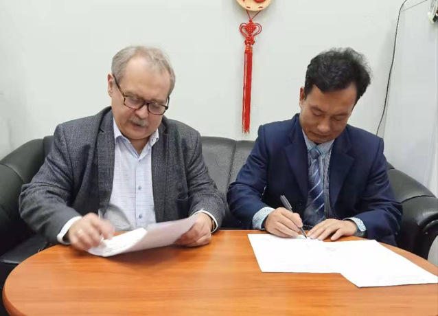 随后,Karpova Liudmila部长向刘院长引荐圣彼得堡国立工业科技与设计大学副校长Pastukhov Alexey教授,双方就本科生短期培训、长期学分互认交流、教师互访授课和校校深度合作办学等方面进行深度会谈,此次会谈取得丰硕成果,并就会谈成果,现场汇总形成友好合作备忘录,刘元义院长与Pastukhov Alexey副校长进行了简短的签约仪式。