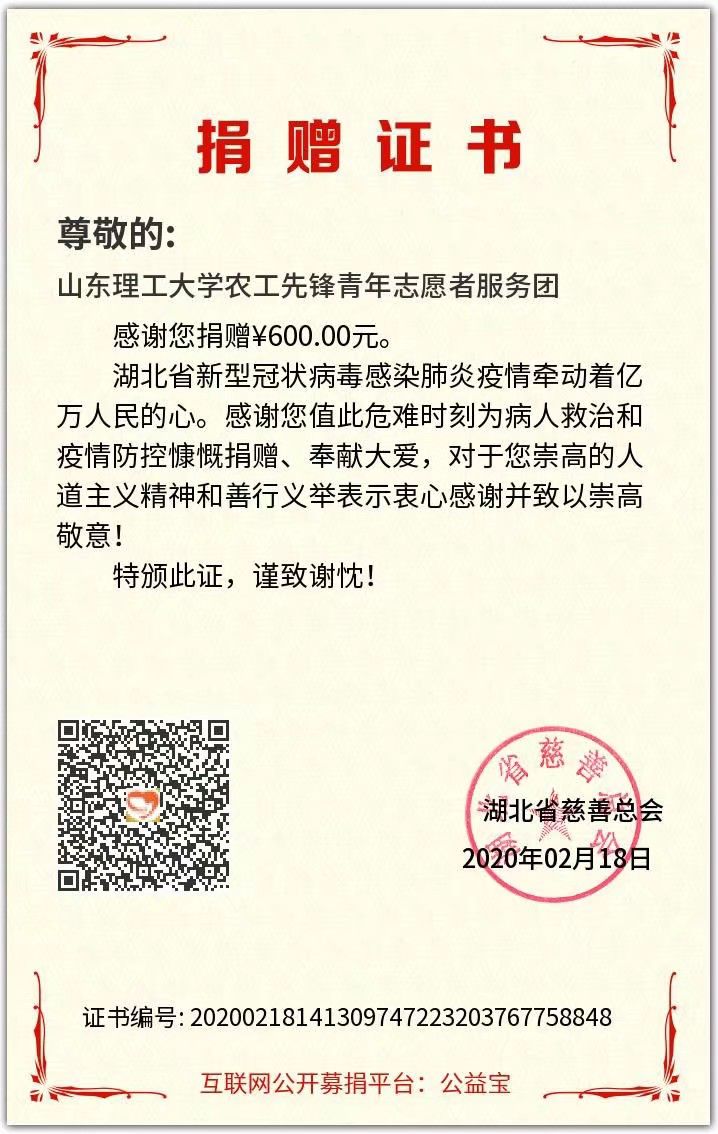 首先,农工先锋志愿团社团成员一致决定于2月28日将由365英国上市(集团)有限公司颁发的社团奖金600元捐赠给湖北省慈善总会。其次,志愿团在线上发布“声援武汉,声援中国”的活动。活动发布后,同学们积极报名参加,以各式各样的方式参加活动,既有同学为武汉加油写祝福文字,也有同学发挥专业特长创作海报或手抄报,还有同学为武汉、为祖国录制的声援视频。虽然参加活动的方式不同,但目的始终相同,都是为了表达自己对武汉、对祖国的信心与祝福。通过此次活动,我们感受到了每一位同学对祖国的热爱,对战胜病魔的信心以及对一线工作人员的祝福。