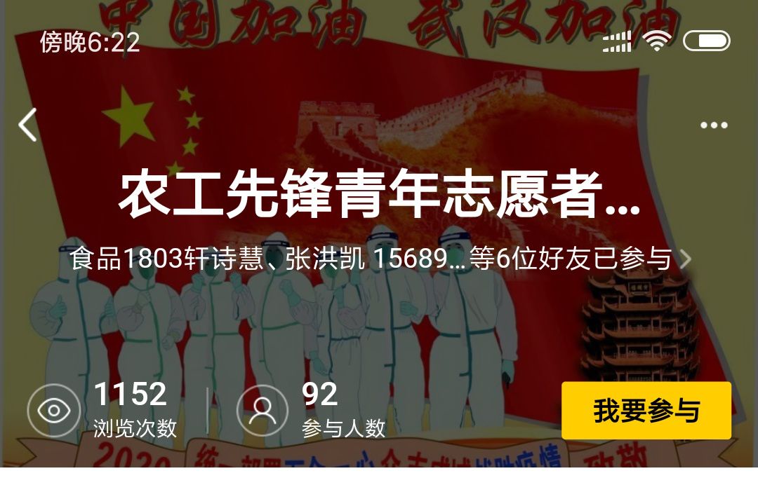 2020年春节以来,湖北武汉爆发的新冠状病毒疫情,牵动着全国人民的心。一方有难,八方支援。为彰显同学们在疫情期间团结一心,共同抗“疫”,与武汉人民同在的精神风貌,农工先锋青年志愿者服务团于2月18日举行志愿团内部捐款以及线上“声援武汉,声援中国”的活动。此次活动由农工先锋青年志愿者服务团举办,志愿团全体成员及各学院部分同学参加。