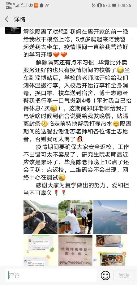 学生们一句句感谢,是对学院返校工作最大的认可,是学院师生热情服务最好的见证,在这个特殊的时期,为我们带来不一样的温暖与感动。