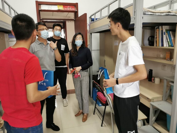 5月30日下午,学院党总支书记柳铎、副书记戴洁一行来到学生公寓楼,看望慰问返校学生,并为返校生送上学院爱心礼包。