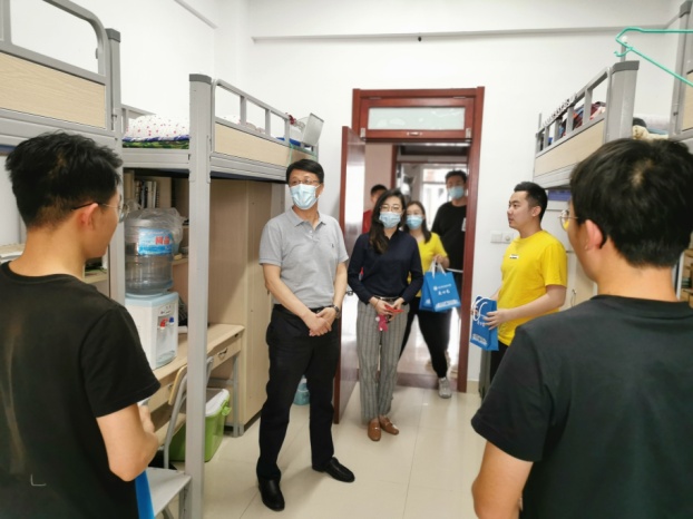 5月30日下午,学院党总支书记柳铎、副书记戴洁一行来到学生公寓楼,看望慰问返校学生,并为返校生送上学院爱心礼包。