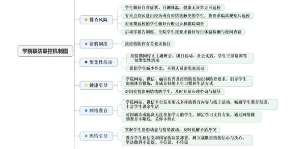 为做好新型冠状病毒感染的肺炎疫情防控工作,切实保障学院学生的生命安全和身体健康,按照校党委决策部署和有关要求,学院多次召开党政联席会研究学生返校工作,先后出台了《农业工程与食品科学学院2020年春季学期疫情防控工作实施方案》、《农业工程与食品科学学院新型冠状病毒感染的肺炎疫情学生联防联控机制》,将全面做好疫情期间学生联防联控工作作为重中之重,周密部署、层层落实,坚决打赢新型冠状病毒感染的肺炎疫情防控阻击战。