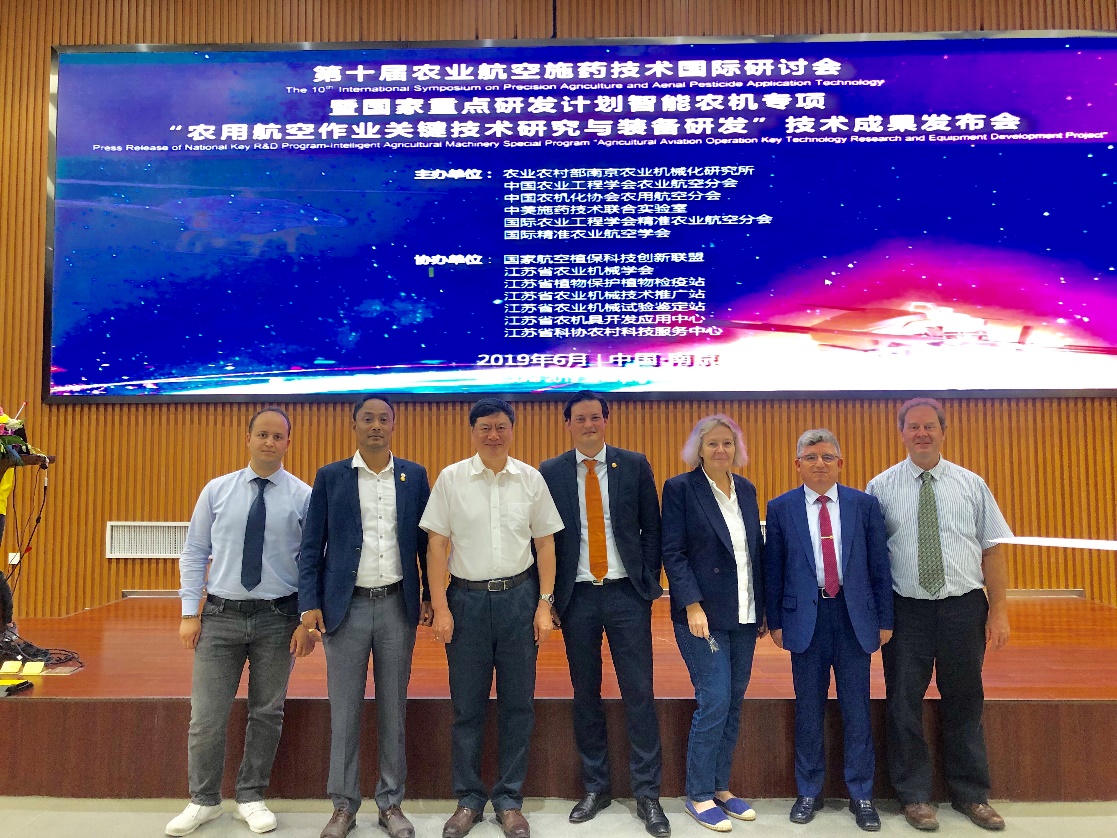 2019年6月18至19日,第十届农业航空施药技术国际学术会暨国家重点研发计划智能农机专项“农用航空作业关键技术研究与装备研发”项目成果发布会在南京召开,法国欧洲科学院院士、国家特聘专家、365英国上市(集团)有限公司院长兰玉彬教授应邀出席活动,精准农业航空研究团队王十周教授以及韩鑫、王会征一同参加。