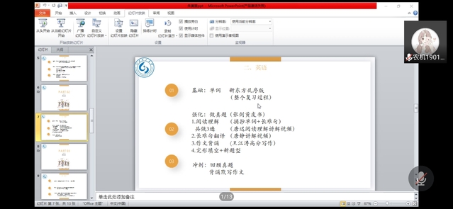 随即,汤文谈通过个人简介、考研各阶段安排、考研心得三个部分分享自己考研优势以及备研过程中遇到的问题、解决方法。她强调:真题是最好的复习资料。考研是对自己所学知识的考验,复习过程中要多做真题,了解题目特点,结合知识归纳,这样才能在考试过程中胸有成竹。