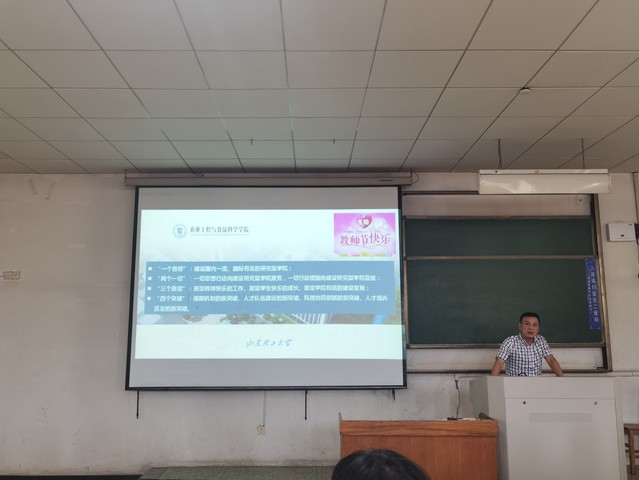 院长李志合就学院“十三五”任务目标完成情况、上半年工作指标完成情况进行了总结,提出存在的主要问题以及对学院各项工作的思考,着重对学院下半年的重点工作做了部署,他指出,要继续推进学院“一个目标、两个一切、三个愿望、四个突破”目标建设,扎实推进高层次人才引进、食品专业博士点、学科评估、专业工程论证、新上专业建设等工作,深化农业工程“一流学科”建设,坚决完成各项学院重点工作任务,积极助推学院各项工作顺利开展。
