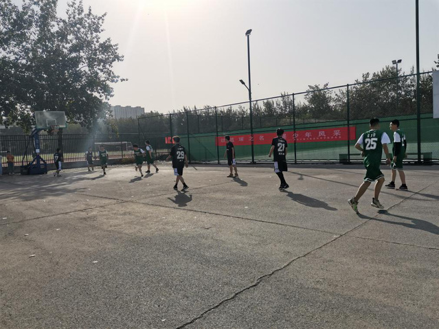 比赛分两轮进行,每轮比赛开始后,各对战班级都展现出极强的篮球天赋及团队精神,用自己的行动诠释着内心的激动与向往。在男生进行激烈的角逐之后,各队女球员进行定点投篮比赛,每队二十球,共计二十分,限时5分钟,得分计入比赛总成绩。各战队虽比分高低不等,但篮球场上始终充斥着欢呼声、加油声。