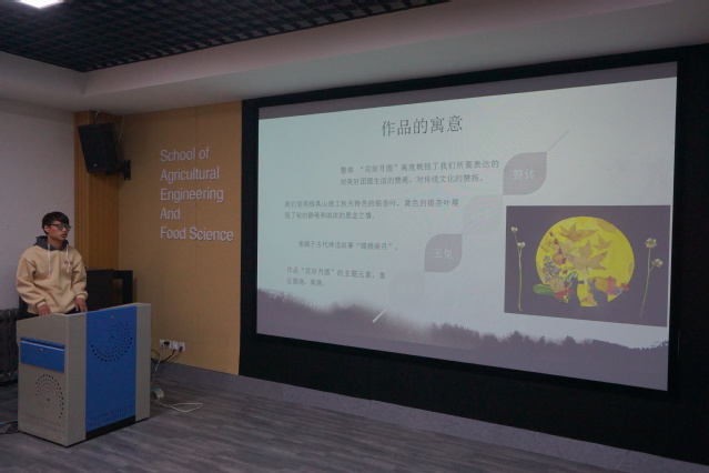 经过初赛评审与投票,22个优秀作品进入比赛决赛。各支队伍携带各自作品实物进行现场答辩与展示。答辩伊始,由主持人介绍评委教师及比赛规则。随后,各团队结合创作灵感、制作过程、作品寓意等方面进行现场答辩。“必加综测队”的作品《花好月圆》以团圆美满为主题,为纪念国与家的节日在一天而创作,内涵深刻丰富;“红星闪闪队”的作品《秋意浓》包含了秋天校园中的所见所闻,难忘的秋日记忆都在画面上一一展现。其它团队也结合PPT、短视频阐释作品主题,讲解作品特色。三位评委认真倾听答辩人的讲解后,对每件作品进行深入点评,并给予相应建议,根据作品创意、作品美观性、答辩展示效果、易班元素应用等评分标准打出合理分数。