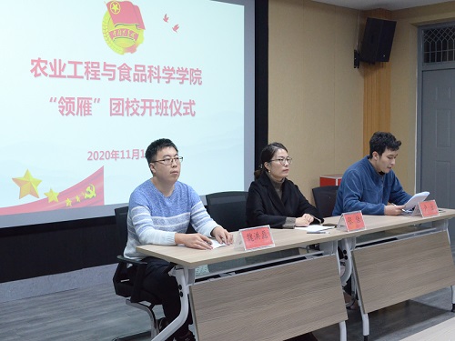 培训在雄壮激昂的团歌中开始,魏洪磊对“领雁”团校进行简要介绍。随后,卢童宣读《农业工程与食品科学学院“领雁”团校培训方案》,他提到此次培训班将从集中授课和素质拓展两方面开展,通过理论学习和实践培养锤炼本领、提升自我,深入推进学院基层团建工作,强化团干部的队伍建设。此外,卢童也对课程安排与分组情况进行介绍,着重强调纪律要求与考核要求。