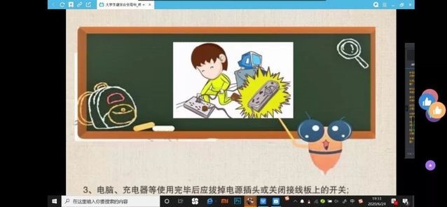 会议伊始,裴雪简要介绍此次活动的目的及意义。随后,裴雪采以视频方式例举身边常见的电信诈骗案例,并教给与会成员如何应对此类诈骗。同学们在钉钉群讨论自己的观点与看法,分享与“骗子”斗智斗勇的过程、发表关于信息泄露的观点,以及询问如何救助溺水人员等问题,讨论十分热烈。最后,杨玉刚就安全用电问题展开讲解。他提到,一定要重视安全用电问题,生命安全是大事,应时刻注意关于插座使用、宿舍用电、如何应对火灾等问题,并作了详细讲解。同学们纷纷表示受益匪浅。