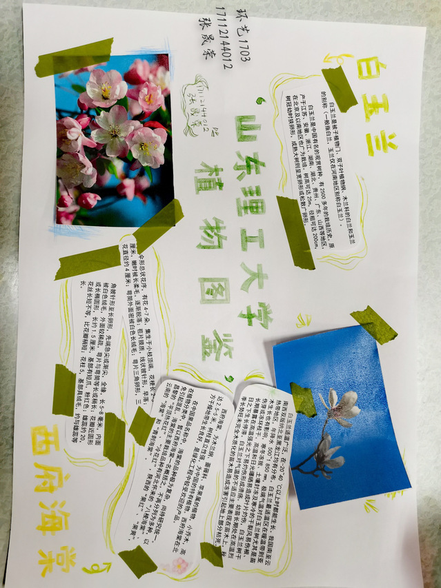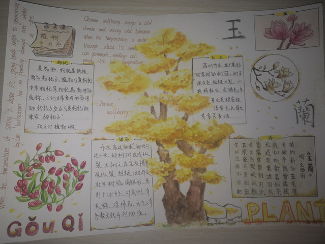 十二月,是忙碌和静谧的季节。学校是共同的美丽家园,校园内的花草树木哪怕是在冬天也构成了一道美丽的风景线。可是很多同学并不认识或了解这些花花草草,或总是匆匆路过没有注意。参与手抄报的同学认真的观察生活中的花花草草,查明它们的相关习性以及特点,将其绘制成手抄报。