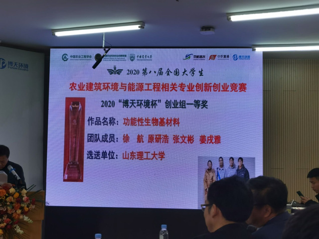 12月26日,第八届全国大学生农业建筑环境与能源工程相关专业创新创业竞赛在中国农业大学烟台校区成功举办,我校遴选推荐的5个项目参加了比赛。最终,蔡红珍教授指导的《功能性生物基材料》项目、付鹏教授指导的《聚光太阳能增效耦合循环热载体法可燃固废热解气化制取高品质燃气系统》项目荣获全国一等奖,另外3个项目荣获全国二等奖。同时,我校被授予为“最佳组织奖”。