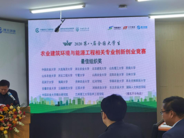 12月26日,第八届全国大学生农业建筑环境与能源工程相关专业创新创业竞赛在中国农业大学烟台校区成功举办,我校遴选推荐的5个项目参加了比赛。最终,蔡红珍教授指导的《功能性生物基材料》项目、付鹏教授指导的《聚光太阳能增效耦合循环热载体法可燃固废热解气化制取高品质燃气系统》项目荣获全国一等奖,另外3个项目荣获全国二等奖。同时,我校被授予为“最佳组织奖”。