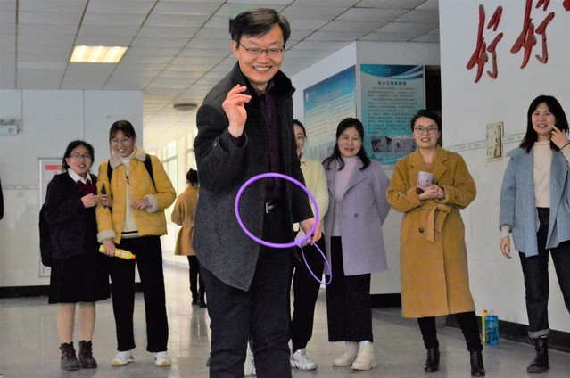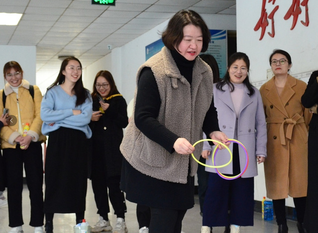 趣味活动在热烈掌声中拉开序幕,女教工们积极参加,大显身手。每个人都按规则排队进行套圈项目,发挥技巧,投向自己喜欢的奖品,每一次套中都引起场内外阵阵欢呼。党总支书记杨直也参与体验套圈项目,与各位女教工们共同庆祝女神节,活动现场欢呼连连,笑声溢满整个北大厅。