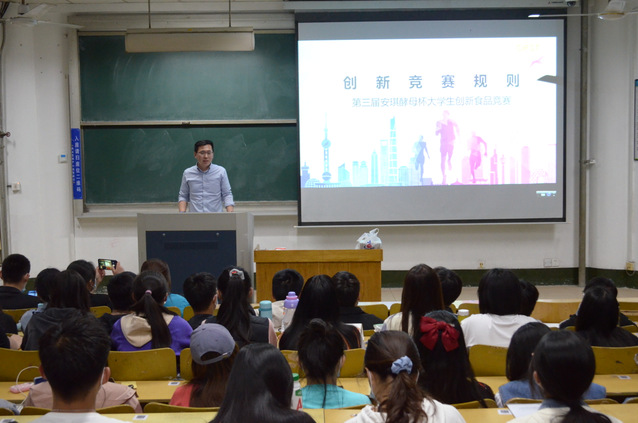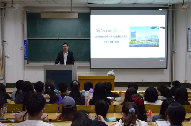 4月19日晚19:00,中国食品科学技术学会第三届安琪酵母杯大学生创新食品竞赛(以下简称“竞赛”)校园宣讲在3号教学楼106教室隆重举行。中国食品科学技术学会侯威、安琪酵母(滨州)有限公司质量总监秦连平、安琪酵母(滨州)有限公司人力总监郭巧利出席了宣讲活动,农业工程与食品科学学院约150名师生代表参与了现场互动。