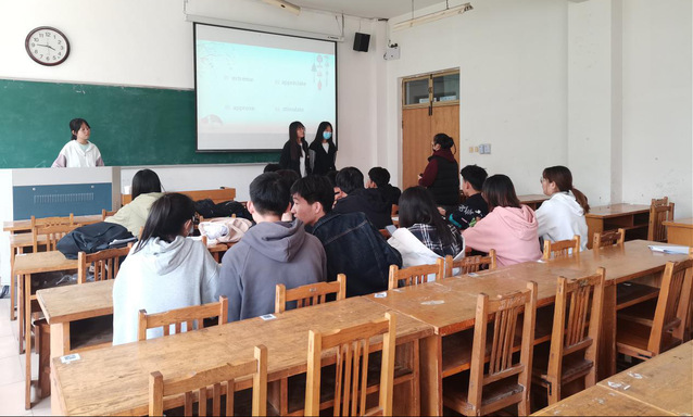 比赛开始,由学习部袁洪娟介绍比赛规则,她提到,比赛前一周由学习部发给同学们英语单词题库进行熟悉和背诵。比赛时每组派一名选手描述需猜单词,可以在黑板上绘画,绘画图案不得含有任何单词文字信息,也可以口头描述它的相关特征,由其他选手猜出英文词汇,猜对即可加1分。若卡壳可以跳过较难的词汇。比赛时间为三分钟,三分钟结束后,得分最高的队伍获胜。