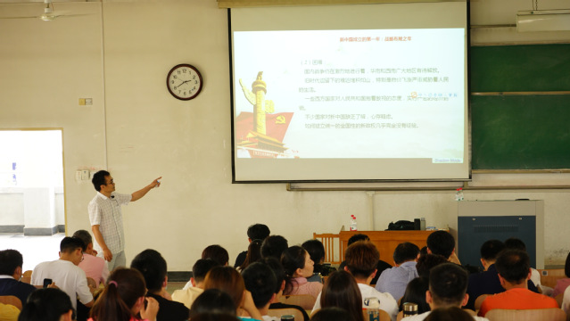 康兆庆围绕“新中国成立的第一年:战略布局之年”、“关于社会主义制度的建立”、“关于‘大跃进’”、“关于‘文化大革命’”四个方面,结合生动史料,阐释了中国共产党带领全国人民在中国特色社会主义道路上的尝试与探索。他讲到,新中国的前30年是一段光荣的历史,中国在这个时候成立,中国的社会主义制度在这个时期建立,国家的大规模经济建设也是自这一时期开始,七十多年来新中国取得的一切成就都是以这段时期为起点。他谈到,要充分认识到在中国共产党的正确领导下,中国所发生的翻天覆地的变化,在学习党史中,应提高政治站位与思想觉悟,深入了解中华民族从站起来、富起来到强起来的历史逻辑,坚定对党和人民的忠诚。