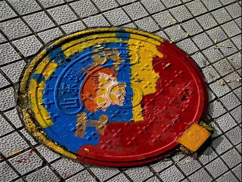 彩绘于井盖,