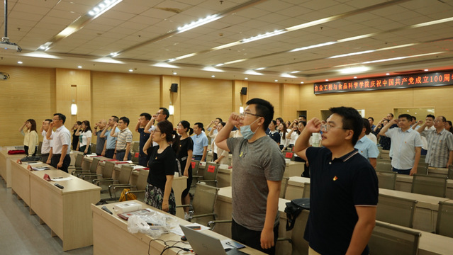 全体教职工党员在党委副书记戴洁的领誓下重温入党誓词。