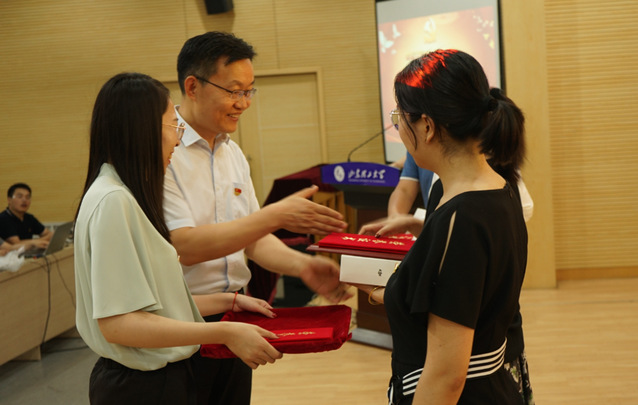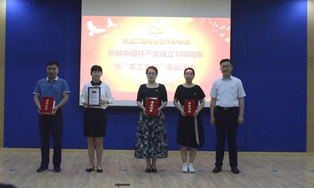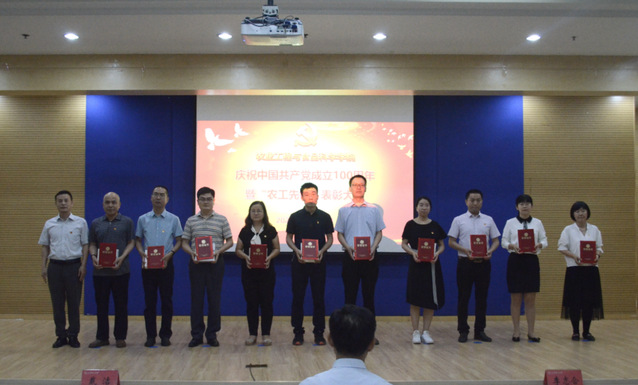 学院领导班子为获得“农工先锋”荣誉称号的党支部、共产党员、获得山东省教育系统优秀党务工作者、淄博市先进基层党组织、山东理工大学优秀党务工作者及优秀共产党员颁奖。