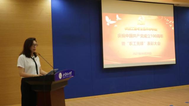 奏唱国歌后,学院执行院长李志合宣读《关于表彰“农工先锋”党支部、“农工先锋”共产党员的决定》,授予农机系教工党支部等4个党支部“农工先锋”党支部荣誉称号,授予姜继稳等21名共产党员“农工先锋”共产党员荣誉称号。