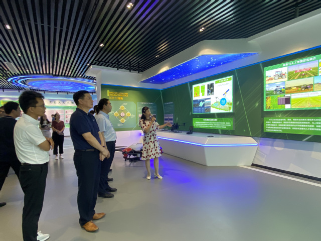兰玉彬院长介绍了生态无人农场研究进展、打造乡村振兴齐鲁样板的思路和推进方案、以及生态无人农场团队师生正在农场开展的遥感试验、航空喷施漂移试验、无人驾驶农机5G通信测试等相关情况。