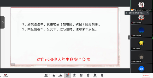 此次新生安全教育及报到安排线上主题班会,是我院开展新生入学前教育的重要举措,为进一步提高新生的安全意识,帮助新生实现高中到大学的顺利过渡,增强新生对学院的认同感与归属感奠定基础。