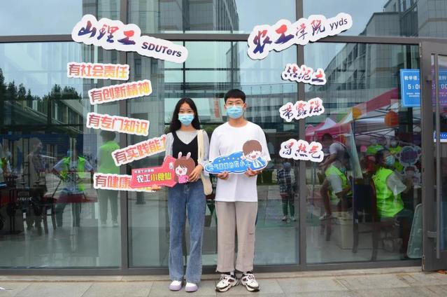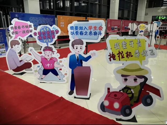 学院还制作了“农工学院YYDS”、“农工之光”及“五有人才”系列特色标识牌,学生可在“网红打卡”背景墙、滚动播放山东理工大学宣传片的巨幕下摄影留念。