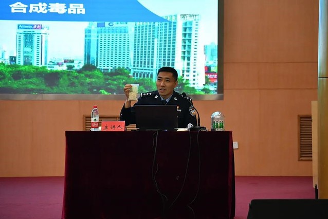 淄博市公安局禁毒支队四级警长亓延庆通过实物展示,让同学们充分了解目前新型毒品种类、危害、打击情况、毒品违法犯罪的相关法律法规及有效预防毒品等知识,告诫大家珍爱生命,自觉抵制毒品。